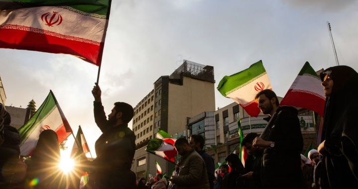 People wave Iranian flags during a rally in Tehran on Saturday. Arash Khamooshi/The New York Times/Redux